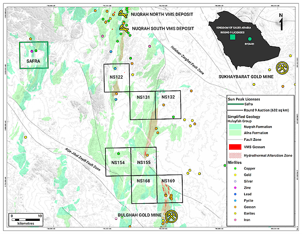 Vancouver, BC – March 31, 2026 – Sun Peak Metals Corp. (TSXV: PEAK | OTCQB: SUNPF) ("Sun Peak" or the "Company") today announced the acquisition of seven exploration licenses totaling 632 km² through the Kingdom of Saudi Arabia’s Round 9 licensing auction. The licenses awarded significantly expand Sun Peak’s footprint within the Arabian-Nubian Shield, with the Company now holding 1,072 km² across 13 exploration licenses in Saudi Arabia.