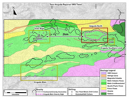 - The Terer VMS zone is located 2 km west and directly along strike of the Anguda North gravity high anomaly, potentially representing continuity of a greater VMS zone (See Figure 3).