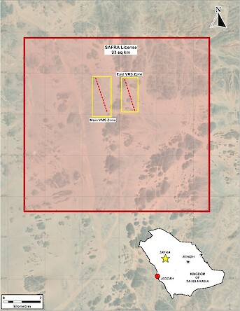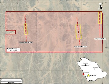 - Al Miyah (234 km²) – Three licenses covering several sub-parallel VMS prospects with evidence of ancient mining (Figure 3).